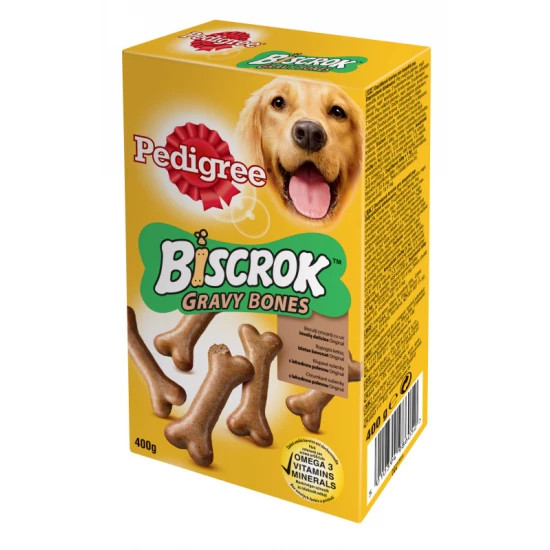 A Pedigree Biscrok Gravy Bone egy különlegesen ropogós, ízletes kutyakeksz, amelyet a kutyák kifejezetten szeretnek. A gondosan sütött kekszek kellemes állagot és magas élvezeti értéket nyújtanak, így ideálisak jutalmazáshoz vagy mindennapi kényeztetéshez.
